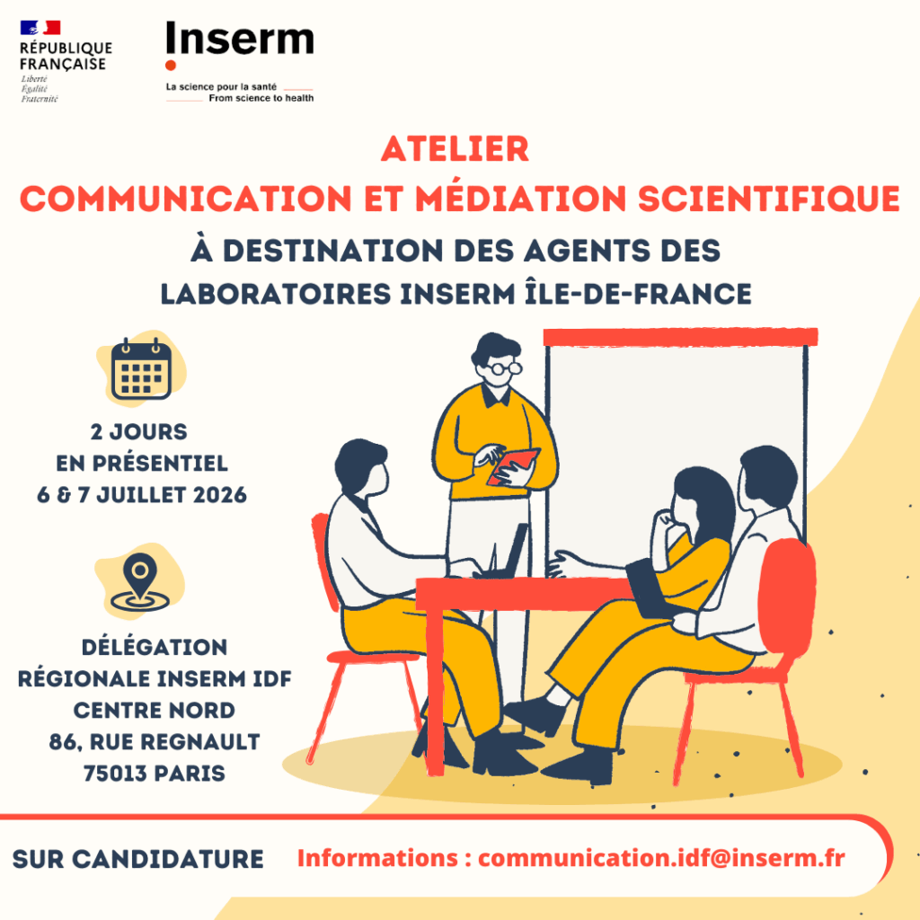 L’atelier est exclusivement ouvert aux personnels ayant une activité de nature scientifique et en poste dans un laboratoire Inserm rattaché à une délégation régionale parisienne (Paris Centre Nord, Paris Centre Est ou Paris Sud).